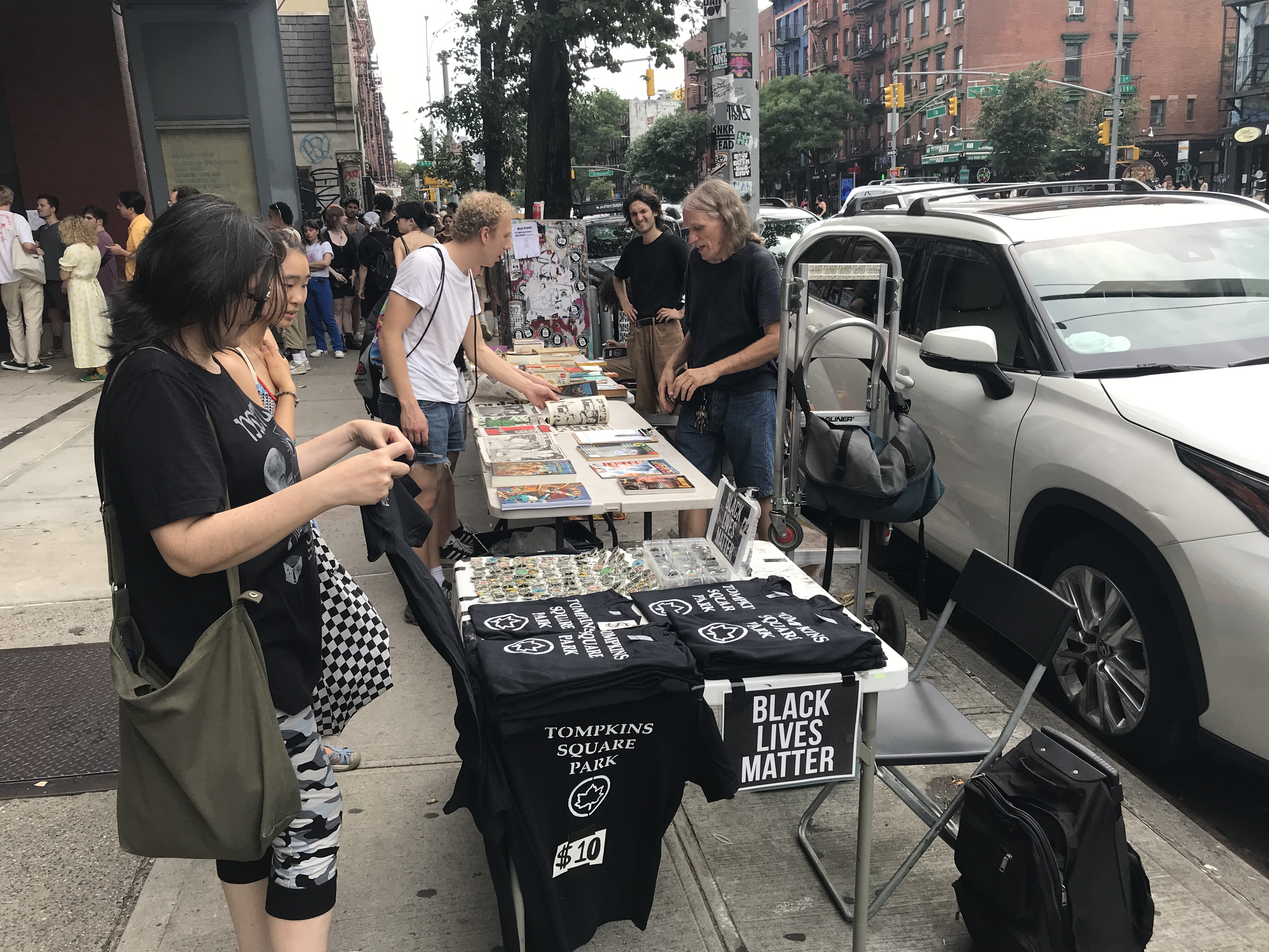 And I had a great time vending #blacklivesmatter #nopolicestate #occupywallstreet #sh*tjustgotreal #washingtonsquarepark #unionsquarepark #morus #theshadow #yoga #music #brooklyn #eastvillage #lowereastside & #iloveny necklaces, magnets, key chains & pins $2 each & Tompkins Square Park t shirts for $10 each outside on the sidewalk next to Chris Flash of Shows in Tompkins Square Park, The Shadow Newspaper and indoors with Museum of Reclaimed Urban Space – MORUS at East Village Zine Fair at 8Ball Community Printed Matter Zine Fair/ St. Marks this past weekend.